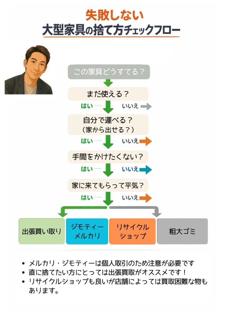 [大型家具の捨て方]粗大ゴミ・買取・売却の判断フロー付き